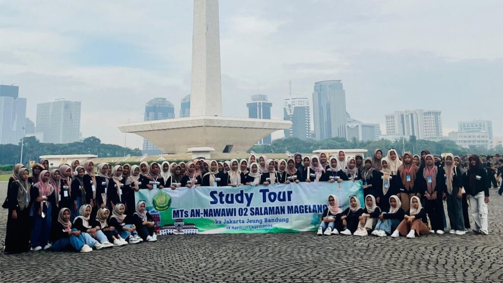 Salaman, 14–17 April 2025 — Dalam upaya memberikan pengalaman belajar yang lebih luas dan menyenangkan, MTs An Nawawi 02 Salaman mengadakan Study Tour ke Jakarta dan Bandung yang berlangsung selama empat hari. Kegiatan ini diikuti oleh siswa-siswi kelas VII (delapan) Tahun 2025 dan didampingi oleh para guru serta tim pemandu wisata yang berpengalaman. Kegiatan ini menjadi momen yang sangat dinantikan oleh para siswa sebagai bagian dari pembelajaran luar kelas yang menyenangkan dan bermakna.